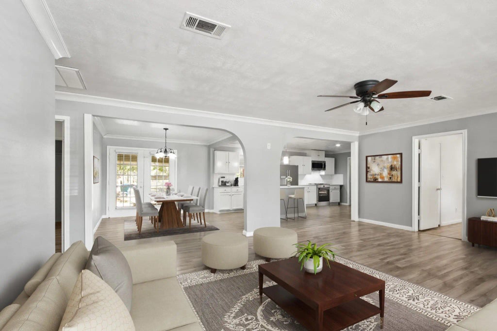 180 Butler Drive is a single story home with 1,400 sqft of living space, 3 bedrooms, 2 bathrooms, sits on a massive 65,253 sqft Lot!, and has NO BACK NEIGHBORS! The wood on the ceiling of the front porch and the back porch were repaired and painted in Oct 2025. There is laminate flooring throughout, and the open floor plan will allow smooth transitions between living room, kitchen, and dining. All areas include crown molding details. The dining has an amazing island with granite counters, and a walk-in pantry. Kitchen's backsplash were updated in Oct 2025. All bedrooms have built-in closets which is another cool feature of this home. There are marble counters in both baths. The floor in the main room was repaired Oct 2025, and the gaps in the interior walls were filled and freshly painted. The back covered patio is so grand it can fit an entire family while hosting a tasty barbecue. Get away from the noise, and enjoy a natural retreat after owning this beautiful property.