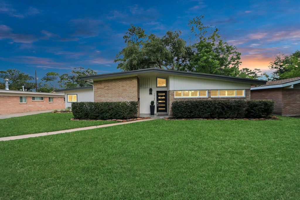 Welcome to this stunning, renovated mid-century modern home that blends its timeless style with today’s comforts. The open-concept layout connects the main living and kitchen area, highlighted by vaulted ceilings that create a bright/airy atmosphere. The saltillo tile flooring brings warmth and character, while brick accent walls, exposed ceiling beams, and a clerestory opening between the living and dining rooms showcase the home’s unique architectural style. The kitchen is a true showstopper, featuring sleek countertops, stainless appliances, ample storage and prep space, a bar and cozy breakfast nook. Also enjoy entertaining in the adjoining dining room that boasts built-in cabinetry with counter. The bedrooms feature recently refinished hardwood floors, with the primary suite tucked away at the rear of the home, complete with a beautifully updated ensuite bath. Updates include new windows (2025), interior remodel (2020) & roof (2019)-see attached features sheet for details.
