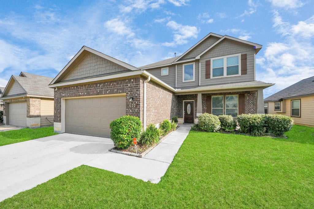 Welcome to 622 Aberhill Dr, Rosharon, TX 77583 — A Beautiful Blend of Comfort and Style This spacious and thoughtfully designed 4-bedroom, 3.5-bath home offers 2,431 sq ft of comfortable living space in the serene community of Rosharon. Built in 2018, the home sits on a 5,500 sq ft lot and boasts modern features, open-concept living, and plenty of natural light throughout. The main level features a generous living area perfect for entertaining, a well-appointed kitchen with sleek cabinetry and stainless steel appliances, and a cozy dining area. Upstairs, you'll find four spacious bedrooms, including a private primary suite complete with a walk-in closet and en-suite bath featuring dual vanities and a soaking tub. Additional highlights include a convenient half bath for guests, a two-car garage, and a fully fenced backyard ideal for outdoor enjoyment. Whether you're relaxing at home or entertaining family and friends, this home provides the perfect setting.