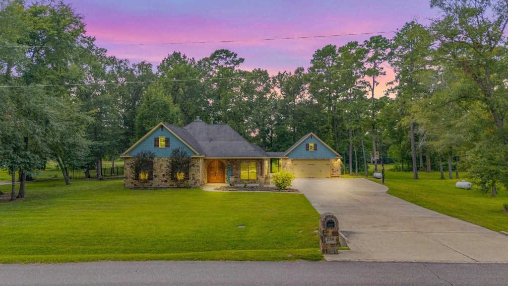 Welcome to 27339 Fairway Crossings—a beautifully designed 4-bedroom home full of charm and thoughtful details, located right on the golf course! Step inside to a stunning entryway that sets the tone for the elegance throughout. The heart of the home features a spacious kitchen with stone accents, a built-in desk area, and plenty of room to gather. You'll love the custom built-in shelves that cleverly hide a secret entrance to the private media/theater room—perfect for movie nights or game day! Outside, enjoy a covered back patio with peaceful golf course views, ideal for relaxing or entertaining. The detached garage includes an additional golf cart bay, currently being used as a shop, offering extra storage or workspace. Situated in the desirable Fairway Crossing community, this home offers a perfect blend of comfort, creativity, and functionality.