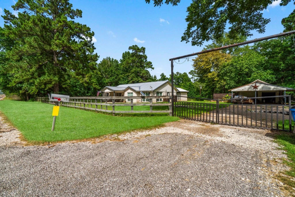 Nestled on approximately 7.6 acres with a stocked pond and a tranquil stream, this one-level brick home offers a spacious living room with a wood-burning fireplace, dining room, kitchen with breakfast area, den, three bedrooms, and 2.5 baths. Enjoy the large country covered back porch with a picturesque view and a guest cottage with a combo living/dining/kitchen area. Ideal for guest quarters, a caregiver, home office, or hobbies. The property also includes a barn with open stalls and some fencing. Just 5 miles north of Livingston, perfect for chickens, horses, or a large organic garden. Embrace country living with town conveniences and endless remodeling possibilities.