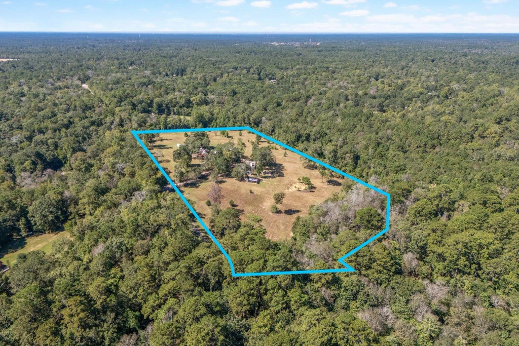 Rare property in the Sam Houston National Forest offering 11.5+ acres of rolling fields surrounded by trees along Peach Creek. The main home sits at the end of a tree lined driveway high on the property. It has an updated kitchen featuring a premium, high end 6-burner Thermador cooktop, other premium appliances, granite countertops, updated cabinetry, a large island, and buffet. It also opens to a grand main room with a vaulted wood ceiling, a floor-to-ceiling fireplace, and a loft. The windows and French doors in the grand room flood the space with natural light and provides picturesque views of the land. The bathrooms have also been updated, including a spa-like primary bath with an oversized multi-head shower and a restored 100+ year-old clawfoot tub. Additional improvements include a barn with stalls, a loft, storage, and apartment, a separate guest house, chicken coop, storage shed, and a detached 2-car garage. See the attached Additional Features and photos for more information.