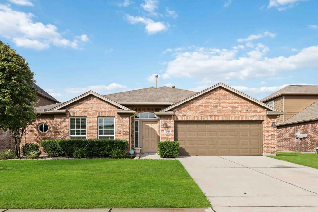 Welcome to this elegant one-story residence, move-in ready and thoughtfully designed to offer both comfort and flexibility for modern living. This 3-bedroom, 2-bathroom home offers an open floor plan with high ceilings, a formal dining room, breakfast area, and a cozy gas-log fireplace that brings warmth and charm to the living space. The kitchen is a true centerpiece, featuring a large island with granite countertops, 42-inch cabinetry, tile backsplash, and a refrigerator included. Privately tucked away, the owner’s suite offers a relaxing retreat with a soaking tub, separate shower, and generous walk-in closet. The two additional bedrooms are nicely sized and provide versatility, ideal for family, guests, or a dedicated home office. Convenient access to I-45 and Sam Houston Tollway, Downtown, IAH, or The Woodlands.