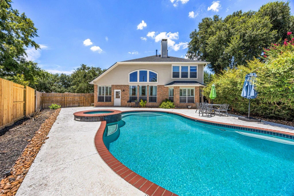 Beautifully updated David Weekley Starlet floor plan with a private backyard pool oasis! This open-concept home features fresh paint, plantation shutters, tile floors, and abundant natural light. The formal dining flows into a spacious living room with soaring ceilings, a wall of windows, fireplace, and half bath. The 2021-renovated kitchen offers granite countertops, ample cabinetry, and a breakfast bar. The first-floor primary suite includes a bay window seating area and an updated bath with dual sinks, soaking tub, large shower, and oversized closet. Upstairs: game room with built-ins, a private bed/bath suite, and two bedrooms with a shared updated bath. Major upgrades include 2024: new roof, fence, landscaping; 2021: PebbleTec pool, SUNDEK concrete, garage epoxy; 2020: AC; 2015: water heater; and a whole-home dual fuel generator. This move-in ready home offers comfort, style, and a true backyard escape, don’t miss your chance to make it yours!