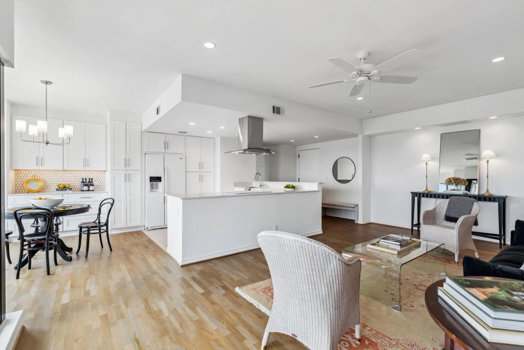 Beautifully renovated 23rd floor 2/2 residence overlooking the Texas Medical Center skyline with SW views. The interior finishes offer a fresh, neutral, open concept with a light and bright space to call home. The kitchen is fully equip with all new appliances including a built-in cooktop and oven, Quartz counters and all new cabinetry designed for maximized storage. Renovated bathrooms with new cabinetry, tiled floors, Quartz counters and seamless glass walk-in showers. Solid wood floors in the entry, living, dining and hallways. Recessed lighting on dimmers, ceiling fans, Maytag washer/dryer and a private covered balcony. Park-side full service high rise living with 24 hour guarded entry, concierge, valet, porter, fitness center with dry sauna, party rooms and an indoor racquetball court. Private resident access to hike/bike trails connecting you to Hermann Park and the Texas Medical Center. Convenient access to freeways and Downtown.