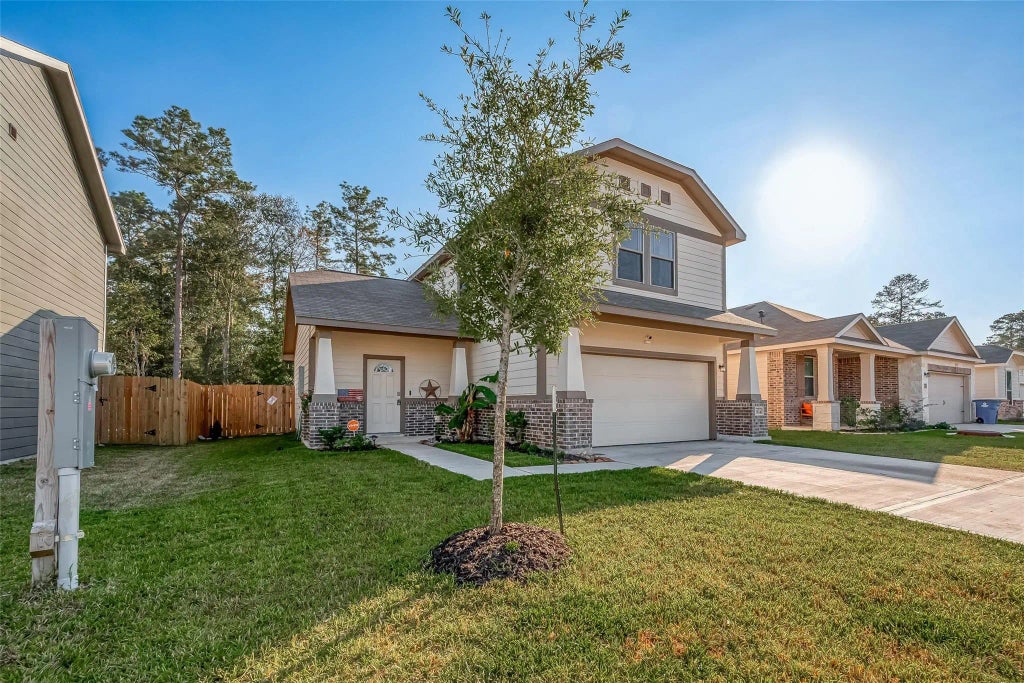 This new construction home offers upgrades such as a water softener system, alarm system, and coated garage floor. The open floor plan allows for plenty of natural light, with a spacious kitchen and breakfast room overlooking the covered patio. Perfect for enjoying your morning coffee. Appliances are included. The property also boasts a builder warranty and is available for long-term rental with specific terms. With 3 bedrooms, 2 bathrooms, and 1808 square feet of living space, this gem is a must-see. Built in 2022, this Single-Family home features a covered back patio and luxury primary bathroom. Lot size is 5468 square feet.