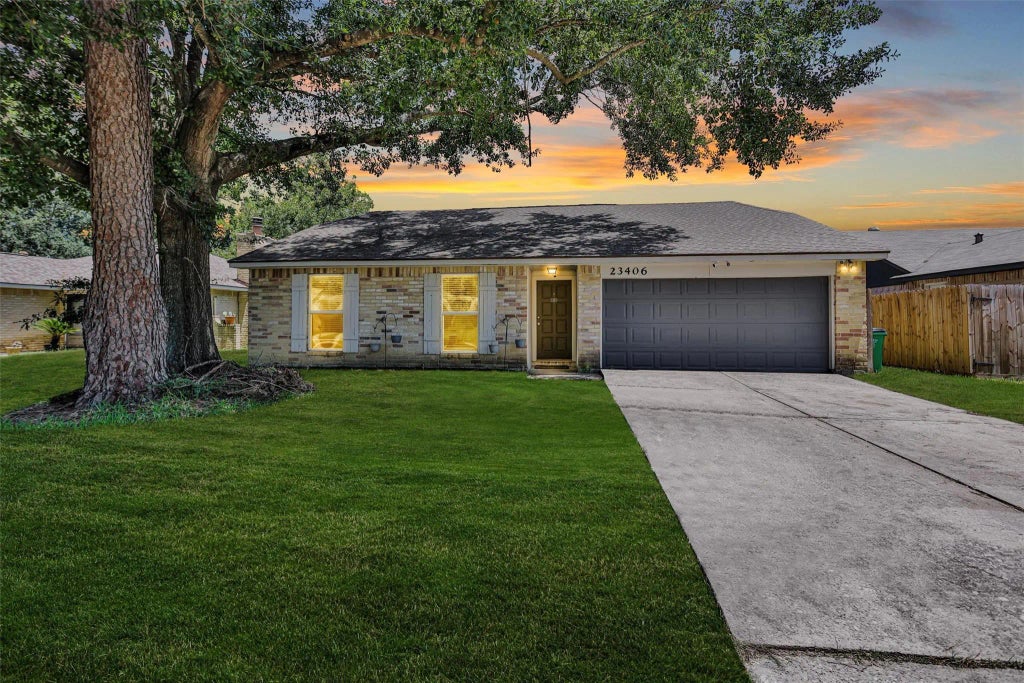 Well-maintained one story nestled in the shade of a large tree. The ranch-style home boasts 4 bedrooms and 2 bathrooms. Vinyl plank flooring throughout with carpet in the 3 secondary bedrooms. 16x14 living room with brick fireplace is open to the dining area. Corner dining space is open to the kitchen. Compact u-shaped kitchen is updated with granite counters, tiled backsplash, SS and black appliances, hardware and lighting. Pantry has a tree mural. Primary suite faces the back of the home and is on the other side of the house from the secondary bedrooms. Bedroom is open to the vanity area. Bathroom is updated with tile and granite counters. Walk-in closet. Secondary bedrooms are all carpeted with ceiling fans. Covered back patio invites you into the back yard with plenty of room for a pool or garden.