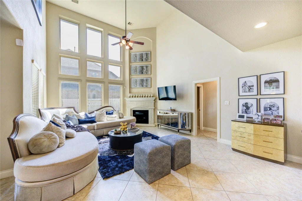 Welcome to this elegant Perry Home featuring a versatile and open layout! The spacious master suite is conveniently located on the main floor, with a large game room upstairs – perfect for family fun or entertaining. This home offers 4.5 bathrooms and an additional room that can serve as a media room, home office, or extra bedroom to suit your needs. The island kitchen boasts granite countertops, stainless steel appliances, a breakfast bar, and ample cabinet space. The family room features high ceilings, creating an open and inviting atmosphere. Elegant wrought iron spindles line the staircase, adding a touch of sophistication. The master bathroom includes dual vanities, a garden tub, and a separate shower for ultimate comfort. Step outside to enjoy the covered patio, ideal for relaxing or entertaining guests.