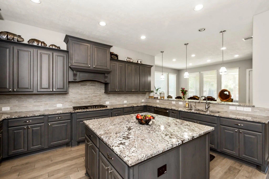 Luxury awaits at 7323 Settlers Way! This stunning 2-story Trendmaker home in Cane Island’s Gated section offers 3,874 sqft on an oversized 11,278 sqft lot with no back neighbors. Features include 4 beds, 3.5 baths, a study, gameroom, media room, and an extended covered patio with pergola and recently added stone extensions. The elegant stone & stucco exterior opens to a dramatic double-door entry and sweeping staircase. Inside, enjoy hardwood floors, soaring ceilings, and a floor-to-ceiling stone fireplace. The chef’s kitchen boasts a wrap-around island, granite counters, stainless steel appliances, and double ovens. The spacious primary suite includes two large walk-in closets and a spa-like bath. Media room includes projector, screen, audio system, console, and theater seating. The jacuzzi is included, along with a high-res security camera system, smart doorbell and entry, and a garage with upgraded flooring. Zoned to award-winning Katy ISD!