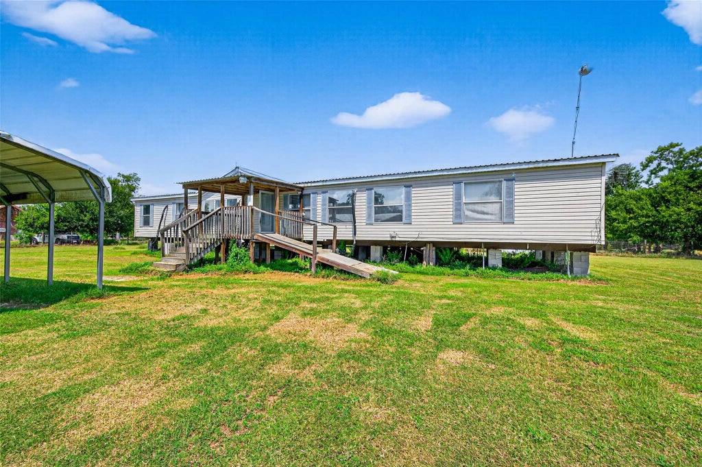 Country living just minutes from I-10! This 3-bed, 2-bath manufactured home sits on 1+ unrestricted acre between Sealy and Brookshire. With 2,187 sq ft and no HOA, enjoy open space and flexibility. Features include a spacious primary suite with walk-in shower and closet, 20'x20' covered back porch, and 10'x10' front porch. Home is elevated on double-stacked cinder blocks. Never flooded and not in flood zone. Two 250-gallon propane tanks convey, along with washer, dryer, refrigerator, and Cub Cadet ZT1 46 zero-turn mower. Sold as is and priced to sell, this property is ideal for those seeking country charm with city access!