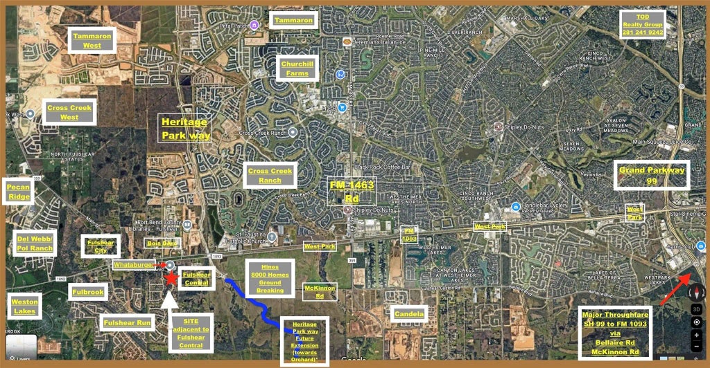 Exceptional opportunity to own a 1+ acre unrestricted commercial lot strategically located on McKinnon Road in the heart of Fulshear’s most active growth corridor. This key roadway is set to become a major connector between FM 1093 and the highly anticipated Hines Development and Candela subdivision, making this property ideal for businesses seeking high visibility and accessibility. Surrounded by Fulshear’s premier master communities—including Cross Creek Ranch, Fulbrook, Fulshear Run & steps from Fulshear Central—this location sits within a thriving, high-income, family-oriented demographic with rapidly increasing demand for healthcare, retail, & service-based businesses. With over 8,000 new homes planned in the immediate area and Fulshear Central offering luxury offices, retail, and entertainment next door, this lot offers a built-in customer base. Perfect for urgent care, dental or medical clinics, boutique retail, drive-thrus, daycare centers, wellness and education facilities.