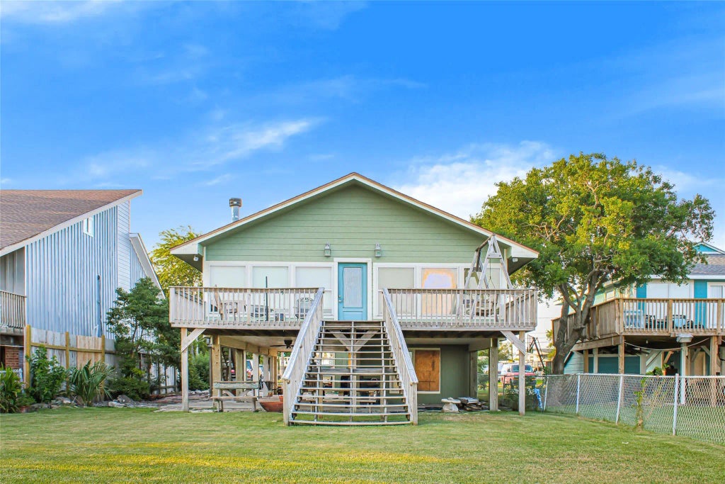 Welcome to 1437 John Street, a stunning waterfront retreat in San Leon! This charming 2-bedroom, 2.5-bathroom home is elevated on stilts, offering breathtaking views of the serene waters. The open-concept living area is flooded with natural light, showcasing the beauty of the surroundings. Enjoy cooking in the well-appointed kitchen, which seamlessly flows into the spacious dining and living areas—perfect for entertaining. Each bedroom boasts ample space and en-suite bathrooms for added privacy. The additional half bath is conveniently located for guests. Step outside to your private deck, where you can unwind with picturesque sunsets or host gatherings with friends and family. Situated in a peaceful neighborhood, this home combines coastal living with modern comfort. Explore nearby parks, local eateries, and water activities just minutes away. Whether you're seeking a weekend getaway or a full-time residence, Don’t miss your chance to own this slice of paradise!