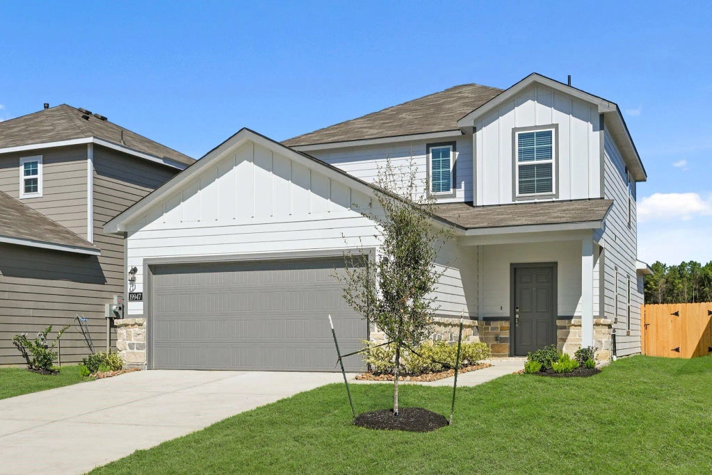 The Hampton two-story home is an open-concept floor plan featuring the primary suite privately situated on the first floor, while the secondary bedrooms are on the second floor. The gourmet island kitchen overlooks the great room and the dining room, creating a spacious entertaining area. And the upstairs gameroom offers a secondary entertainment space for the home.