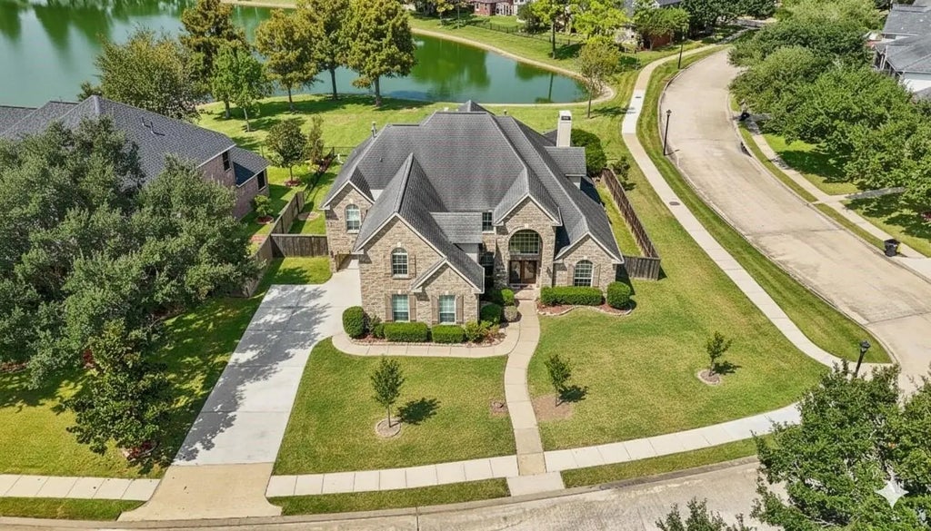 ^^OPEN HOUSE SATURDAY, 10/11 FROM 1PM-3PM^^ *RARE TWO BEDROOM/TWO FULL BATHROOMS DOWNSTAIRS* Beautifully situated in the desirable Orchard Lake Estates gated community, this expansive 5-bedroom, 4-bath, two-story brick home exudes elegance and comfort. Step inside to a grand entry with a stunning curved staircase, an open layout, and a spacious family room with fireplace. The gourmet kitchen flows seamlessly into the breakfast and dining areas, perfect for gatherings. Upstairs, enjoy a balcony with serene lake views, while the covered patio and wide, lush backyard offer the ideal outdoor retreat, along with a game room and media room. Every corner of this home showcases thoughtful design and grandeur. Conveniently located near FM 1464, Grand Parkway (99), US-59, shopping, and dining—this home combines luxury living with easy access to everything Sugar Land has to offer.