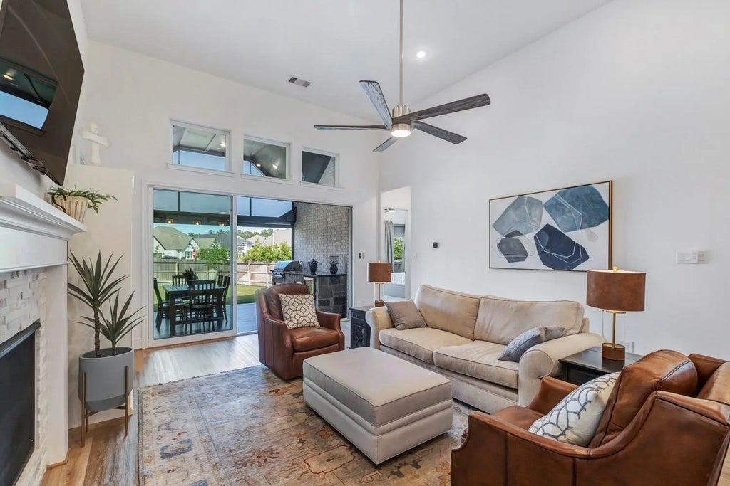 Modern elegance meets thoughtful design in this 4-bedroom, 4-bath home set on a premium 1/3-acre corner lot. The open-concept layout impresses with soaring ceilings, 8’ doors, designer lighting, and wide-plank flooring. A glass-enclosed study complements the chef’s kitchen, where quartzite countertops, a grand island, double ovens, built-in refrigerator, wine fridge, spice racks, and glass-front cabinetry elevate every detail. The tranquil primary suite features custom closets and a spa-worthy bath, while a private rear wing with game room, bedroom, and bath offers ideal multi-generational flexibility. Enjoy seamless indoor-outdoor living with a stacking glass wall, motorized screen, summer kitchen, and tiled veranda. The oversized 4-car garage includes a workshop, dog/car wash station, built-ins, and expanded parking. With smart-home automation, whole-home generator, water softener, and custom utility room with washer/dryer, this home is better than new.