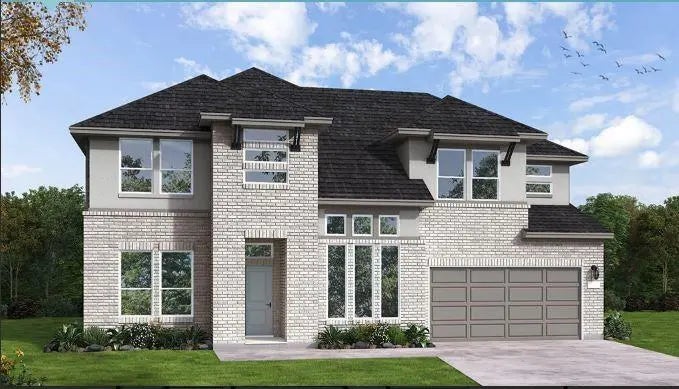 This stunning two-story home has it all, showcasing 5 bedrooms, 4.5 bathrooms and 3-car garage. Enter through the impressive entry and discover a beautiful staircase, private study and guest bedroom with en suite bath, providing functionality and comfort. Entertain in style in the formal dining room, seamlessly connected to the gourmet kitchen via the butler's pantry. The kitchen is a chef's delight, featuring a large island with ample storage, built-in appliances, a walk-in pantry, and a charming breakfast nook. Relax in the family room, boasting 19ft ceilings, and views that lookout to the Texas-size covered patio, or cozy up in the first-floor media room for a movie marathon. With 5 spacious bedrooms and 4.5 baths and a large corner lot you'll have plenty of space for everyone. Your dream home awaits – visit today!