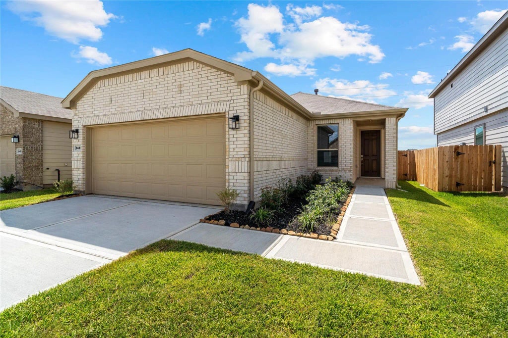 KB HOME NEW CONSTRUCTION - Welcome home to 6422 Kentfield Drive located in the master planned community of Glendale Lakes and zoned to Fort Bend ISD! This beautiful 4 bedroom, 2 full full baths, and attached 2 car garage features stainless steel Whirlpool appliances, 42" Woodmont Dakota cabinets in the kitchen, breakfast bar added to kitchen countertop, dual vanities and separate tub and walk in shower in primary bathroom, vanity with knee space in secondary bathroom, 8' Entry Door, SmartKey and SmartCode Entry Door Hardware, 2" faux wood blinds, gutters on the front of the house, and an extended patio slab in the backyard. This beautiful home with be sold with ALL FURNITURE! You don't want to miss all this gorgeous home has to offer! Call to schedule your showing today!
