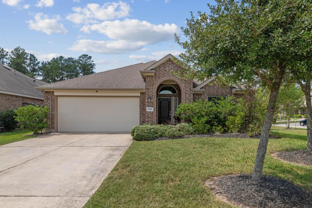 Discover this elegant Conroe residence, perfectly positioned in a desirable neighborhood just minutes from I-45. Enjoy quick access to shopping, dining, and entertainment, while being surrounded by parks, scenic walking trails, and picnic areas. Across the street is the acclaimed Carl Barton Jr Park, offering baseball, soccer, tennis, basketball courts, playgrounds, and beautiful walking paths for outdoor enjoyment. Located on an expansive corner lot, this home boasts impressive curb appeal and spacious interiors. Inside, you’ll find modern, cohesive finishes. The gourmet kitchen features granite countertops, a tiled island apron, upgraded oven and dishwasher, and a stylish backsplash. All appliances are included, along with custom blinds, smart home features, and upgraded lighting fixtures creating a perfect balance of comfort and elegance. This exceptional home combines modern sophistication, outdoor living, and prime location.