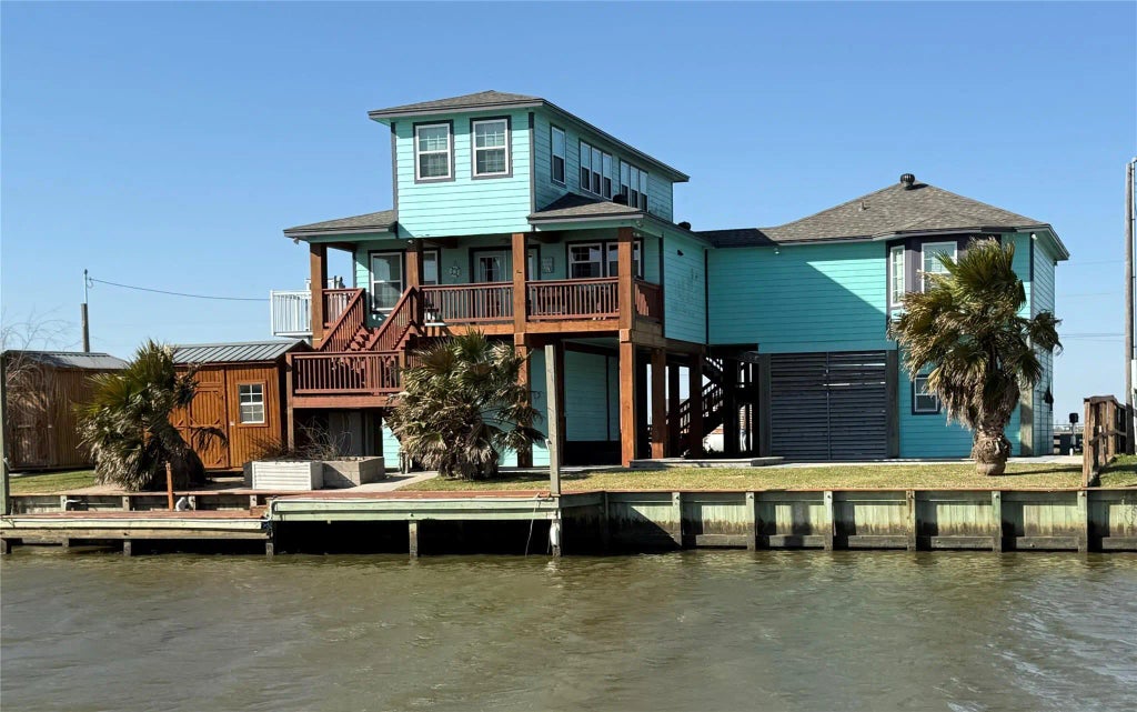 FURNISHED HOME on two waterfront lots perfectly appointed for full time living. Fishing pier and vinyl bulkhead on canal accessing Bay and Gulf fishing. Custom built in 2016, then 574sf added in 2020 to include 3 bedrooms, 1 full bathroom/laundry area, and a 250sf garage. Luxurious heated pool and spa also added with new energy efficient wireless pool equipment installed in 2024. Full house Generac Home Generator and Cargo lift installed for convenience and safety. New roof installed in 2024. House has 2 HVAC systems that can be isolated, 2 water heaters and a video surveillance system. Circle drive with two double gates, provides ample parking for guests and boats. 30 & 50 amp RV hookups provide room for traveling friends, or income producing rental opportunities. Numerous storage options with two 8x12 storage sheds, garage and 285sf bonus room under house. Spacious “crows nest” Master bedroom with stunning views.