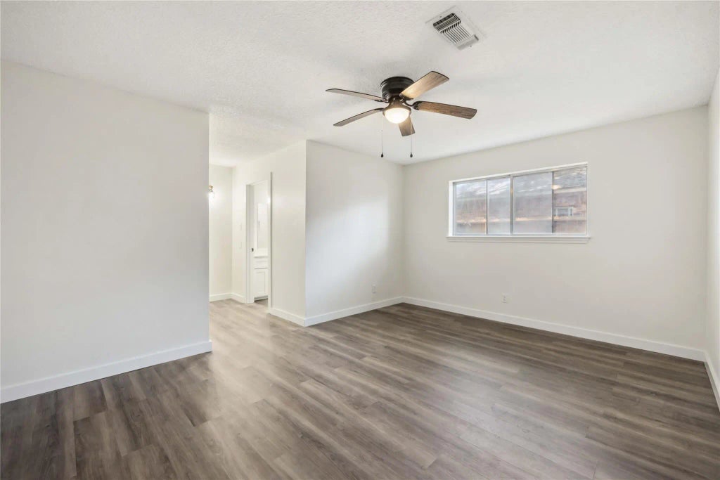 Nestled in the quiet charm of Triple Bar Estates, this beautifully updated single-story brick home offers not just comfort, but connection. Imagine mornings filled with sunlight streaming through large windows, casting a warm glow across wood-style flooring & crisp white walls. Vaulted ceilings with exposed beams add architectural character, while the rustic brick fireplace anchors t/living room w/a cozy touch. The heart of the home, a bright and modern kitchen, features sleek white cabinetry, stainless steel appliances, & a gas cooktop, all seamlessly flowing into open-concept living spaces. Whether it's casual breakfasts at the bar or festive dinners in the formal dining room, there’s room to create lifelong memories. The bathrooms offer timeless design with subway tile, black fixtures, & abundant storage. Step outside into your private backyard—lush green grass, mature shade trees, & a fenced yard invite laughter-filled nights. It's more than a house—it’s where your story continues.