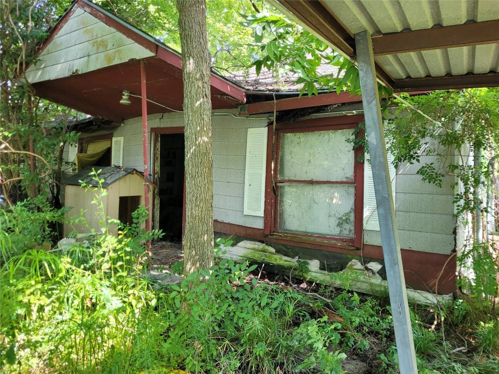 Property extensively damaged, likely a tear down. Growing area just south of 610