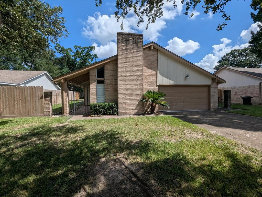 Rod iron gate at the entrance, walk into the step-down den with a fireplace and new laminate planks, also formal dining or study/office space. opens up to the kitchen with all new appliances. New granite countertop extends into the family room to use barstools or chairs. Great for family gatherings or entertaining. Walk into the Primary area with a sitting area and step up to the area for the bed with new carpet. Walk-in closet, fresh interior paint throughout and the exterior. 2 inch blinds throughout, inside utility area and has PEX plumbing. Fully fenced and new on 2 sides, less than a year old, and also a new roof installed in 2024. No survey, no Sellers Disclosure. For Deed Restrictions & By-Laws go to inwoodpineshoa.com