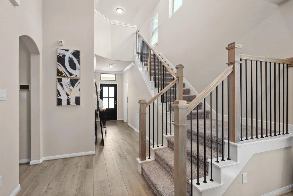 Be captivated by the Wilcox floor plan! A refined design that effortlessly balances elegance and functionality. Step inside and be drawn to the graceful flow of the open layout, a designer kitchen, abundant counter space, and ample cabinetry—connecting to the sophisticated dining area and great room. The primary is a true sanctuary on the main floor and features a spa-inspired bath and a spacious walk-in closet that elevates everyday living. Upstairs, two bedrooms and a game room offer a space for guests or quiet retreats. Step outside to your covered porch, perfect for entertaining. Enjoy the added luxury of an extended garage, ideal for extra storage or lifestyle flexibility. All of this is perfectly positioned in a gated section of Lago Mar, where resort-style amenities like the 12-acre crystal lagoon, lush walking trails, fitness centers, and access to upscale shopping, dining, and top-rated schools await. This isn’t just a home—it’s a statement of elevated living!