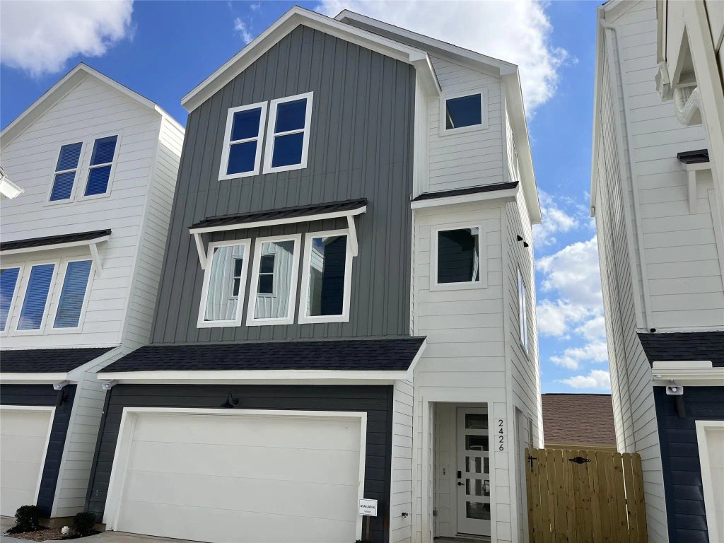 MOVE-IN READY! Nestled in the heart of Near Northside, a charming historic neighborhood just minutes from downtown, this gated community features six freestanding three-story homes thoughtfully designed for modern city living. This home features a 3-story layout with 3 bedrooms, 3.5 bathrooms, and a versatile flex room on the second-floor ideal for a home office, gym, or media space. Contemporary finishes include engineered hardwood flooring throughout, a spacious kitchen island with a quartz waterfall countertop, and abundant cabinet storage, creating a perfect blend of style, functionality, and urban convenience. Photos are of another home by Disama Group. FINISHES AND SELECTIONS WILL VARY! Ceiling fans are not included.