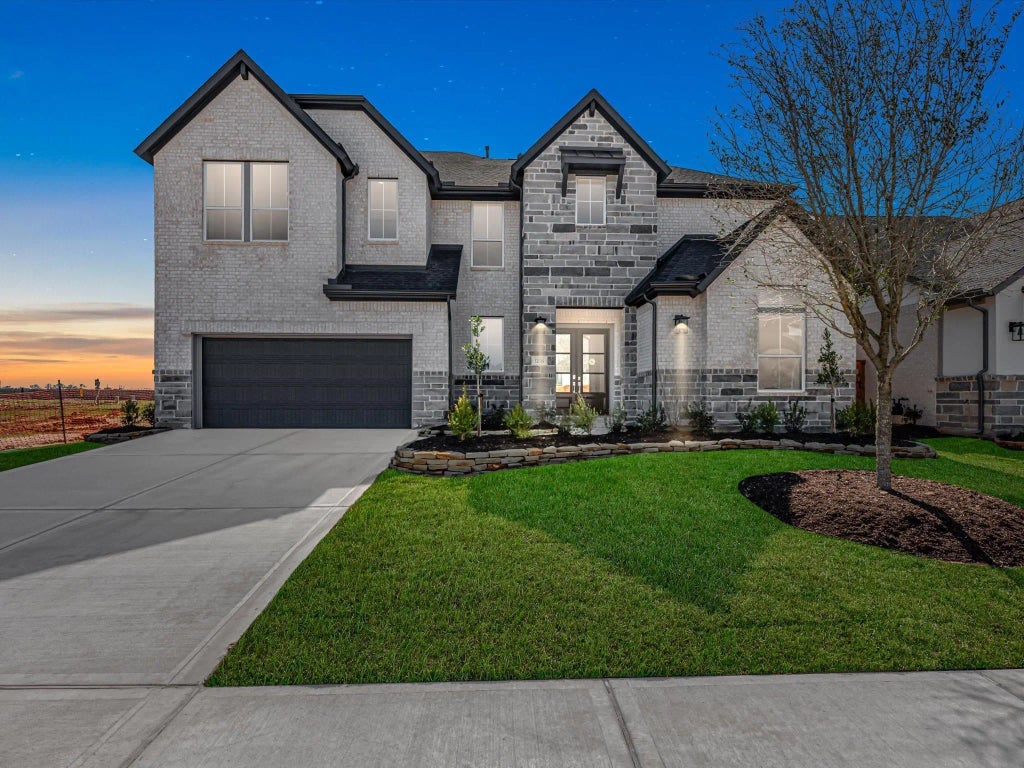 The Windsor - Step into luxury with this refined two-story Windsor home, featuring a stunning curved staircase and soaring ceilings that make a lasting impression. The open-concept layout connects the great room and gourmet kitchen, which is beautifully appointed with Groveland MDF Extra White cabinetry, Calacatta Ultra quartz countertops, and a Calacatta Dolomiti tile backsplash. A convenient prep kitchen, laundry room, and spacious 2-bay garage add everyday ease. The elegant primary suite offers dual vanities, a freestanding tub, and a generous walk-in closet. Upstairs, enjoy movie nights in the media room, fun in the game room, and peaceful evenings on the covered patio.