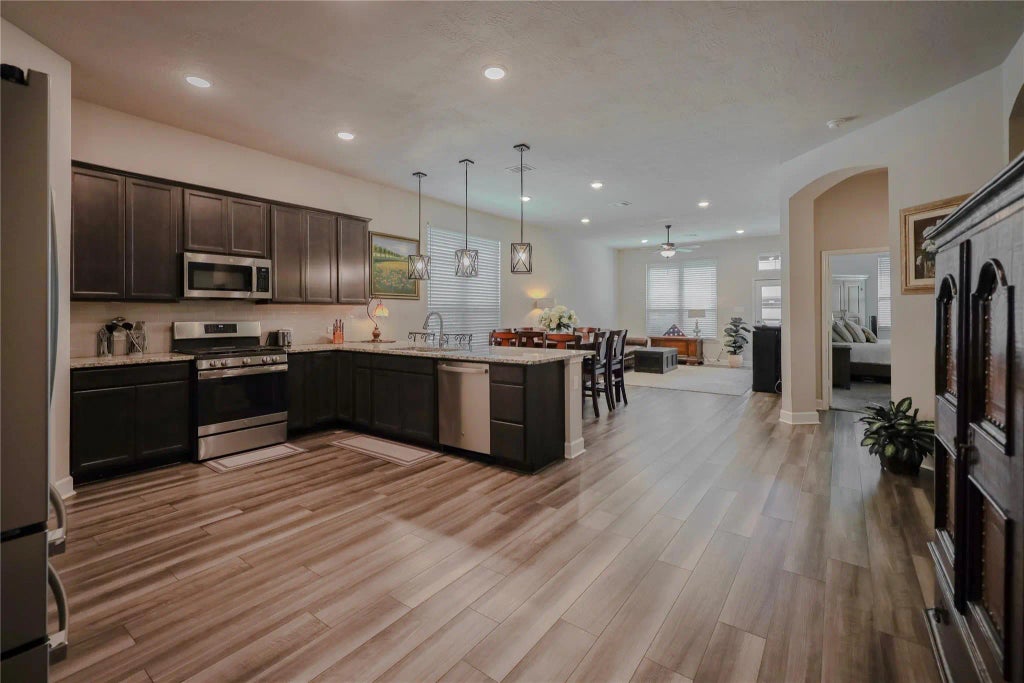 MUST SEE CORNER LOT WITH LARGE SPACIOUS YARD! Energy efficient 4 bedroom, 3 bath home in newer section of Vintage Farms. This favorite floor plan has a huge open kitchen equipped with GE Profile appliances. Gas stovetop and oven. Breakfast bar is open to the dining room and living room making it great for family to stay connected. This wide open space with 10 foot ceilings allows natural light to flow throughout. Primary ensuite bedroom with two walk in closets, new carpet (9/25), bathroom with double vanity sinks, separate shower, and soaking tub. Separate secondary ensuite bedroom with walk in closet perfect for home/office, guest room, or mother-in-law quarters. Upgrades include custom blinds, added cabinets to all 3 bathrooms, seamless gutters, 2 gas water heaters. Large backyard with covered patio, TUFF shed storage unit, and still plenty of room for garden or playset. Beautiful nature walking trails directly across street.