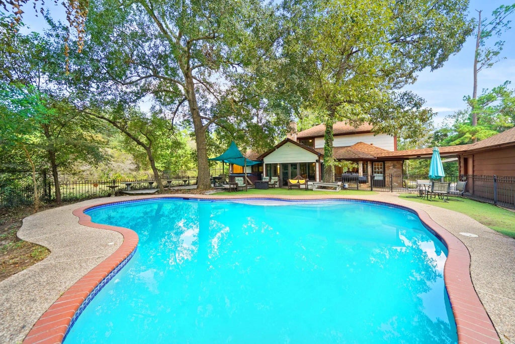 Welcome to this serene 5+ acre estate in Magnolia, just minutes from The Woodlands and Tomball! This remarkable property features a stunning 4-bedroom, 2.5-bath main house, a sparkling pool, a tranquil pond, and a charming 1-bedroom, 1-bath casita, with a full kitchen and cozy family room, all surrounded by lush landscaping and towering trees. Inside the main house, you'll find an expansive family room, a formal dining room, and a delightful breakfast area. The spacious kitchen includes a generous corner butler's pantry, while a sunroom floods the space with natural light and offers lovely views of the outdoor oasis. The first-floor primary retreat serves as a true sanctuary, complete with an en-suite bathroom. Upstairs, three additional roomy bedrooms and a bathroom await. This secluded property is conveniently close to essential amenities, operates on well and septic systems, and is deed-restricted with no HOA fees. Farm animals allowed. Be sure to wander down to the pond.