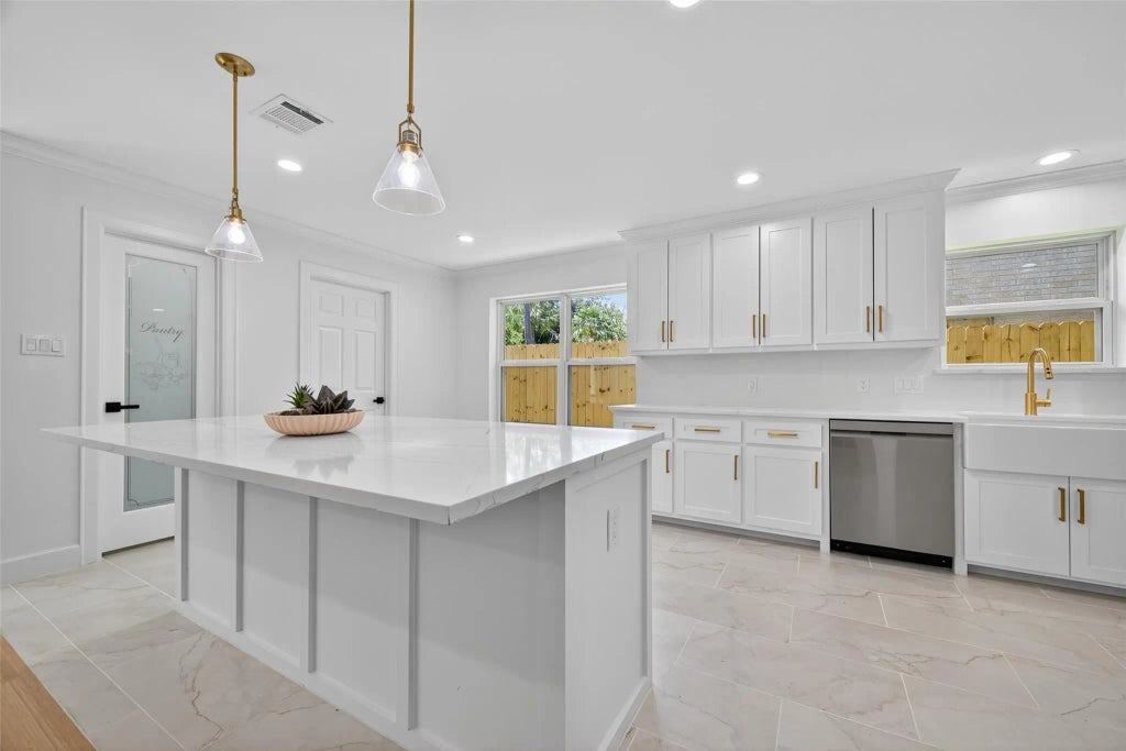 Stunning, Move-in-ready, 4 bedroom, 2 bath home! The freshly painted exterior and updated landscape lead to a spacious entryway, which can also function as a multi-use space. A lovely living room and dining room are located just off the entry and showcase a wood-burning fireplace. The living room opens to the gorgeous kitchen with a large island, quartz countertops, custom-built soft-close cabinets, and stainless steel appliances, walk-in pantry and indoor utility room. The primary bedroom offers a separate oversized shower and soaking tub, double sinks, two closets, and a privacy bathroom. The guest bathroom with double sinks and a shower/tub, along with additional bedrooms, are just down the hall. Upgrades also include: 30-year HD composite roof with a radiant barrier, water heater, new custom cabinets, a new electrical panel, and PEX plumbing, and new tile and paint throughout. BGP HOA offers a private pool area, playground, tennis courts, and a nearby dog park.