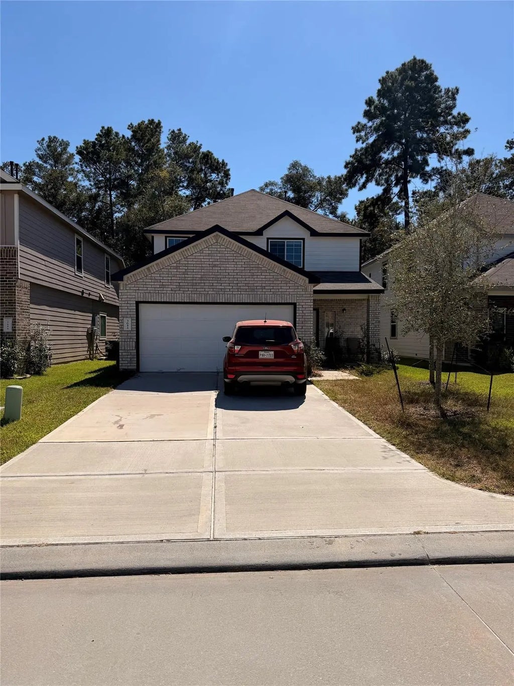 Beautiful 4-bedroom, 2-bath home located in the desirable Mackenzie Creek community. Built in 2022, this 2,074 sq. ft. residence offers a modern open-concept floor plan with high ceilings, neutral finishes, and plenty of natural light. The spacious kitchen features an island with breakfast bar, pantry, and adjoining dining area. The primary suite is located on the first floor with a walk-in closet and ensuite bath with dual sinks, separate shower, and soaking tub. Secondary bedrooms are located upstairs with a shared bath and game/flex space. Exterior highlights include a brick façade, fenced backyard, and driveway parking. Conveniently situated near I-45, shopping, restaurants, and Conroe ISD schools.