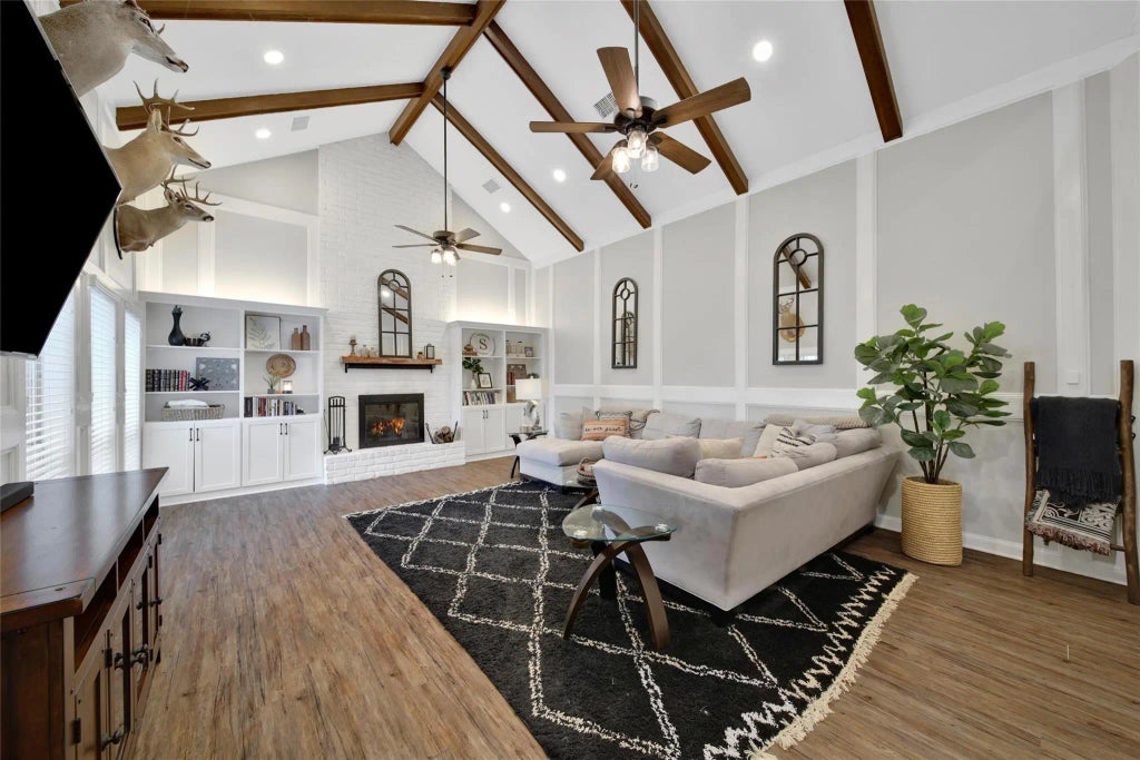 This beautifully updated French Tudor perfectly blends classic charm with modern style! Energy-efficient upgrades include spray foam insulation (home and garage), a state of the art HVAC system, double-pane windows, a tankless water heater, and Energy Star appliances. Inside, you’ll love the remodeled island kitchen with granite counters, shaker cabinets, under-cabinet lighting, stainless appliances, and a butcher block island. Kitchen is open to the dining, living room and dedicated study. The family room wows with a soaring cathedral ceiling, wood burning fireplace and exposed beams. The primary suite downstairs has a spa-like bath complete with soaking tub, large walk in shower, and dual closets. Upstairs has four spacious bedrooms and two full baths. The oversized garage is foamed and air-conditioned, and the big backyard offers plenty of shade! Perfect for those Texas summers! This is a rare find in an established community close to world class shopping, dining, and entertainment.