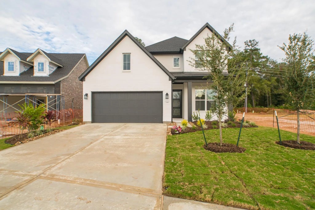Welcome to this one of a kind home where you will love to live located in the beautiful community of Lakes at Creekside. It greets you with a gorgeous white painted brick exterior and lovely landscaping, once inside you will see high ceilings and neutral tones throughout. There are many outstanding features within the home, these include: Wood floors, a sleek light tone kitchen with quartz countertops, lots of cabinets giving you plenty of storage space, a modern fireplace in the living room with sliding glass doors, great sized owners retreat with an ensuite bath featuring double vanities, a freestanding tub and separate glass door shower. Making your way upstairs you will find wood tread stairs, a great sized gameroom, adjacent media room and more bedrooms. Outside you have a wonderful covered Patio perfect for gatherings. This home will help you make everlasting memories, come visit and fall in love.