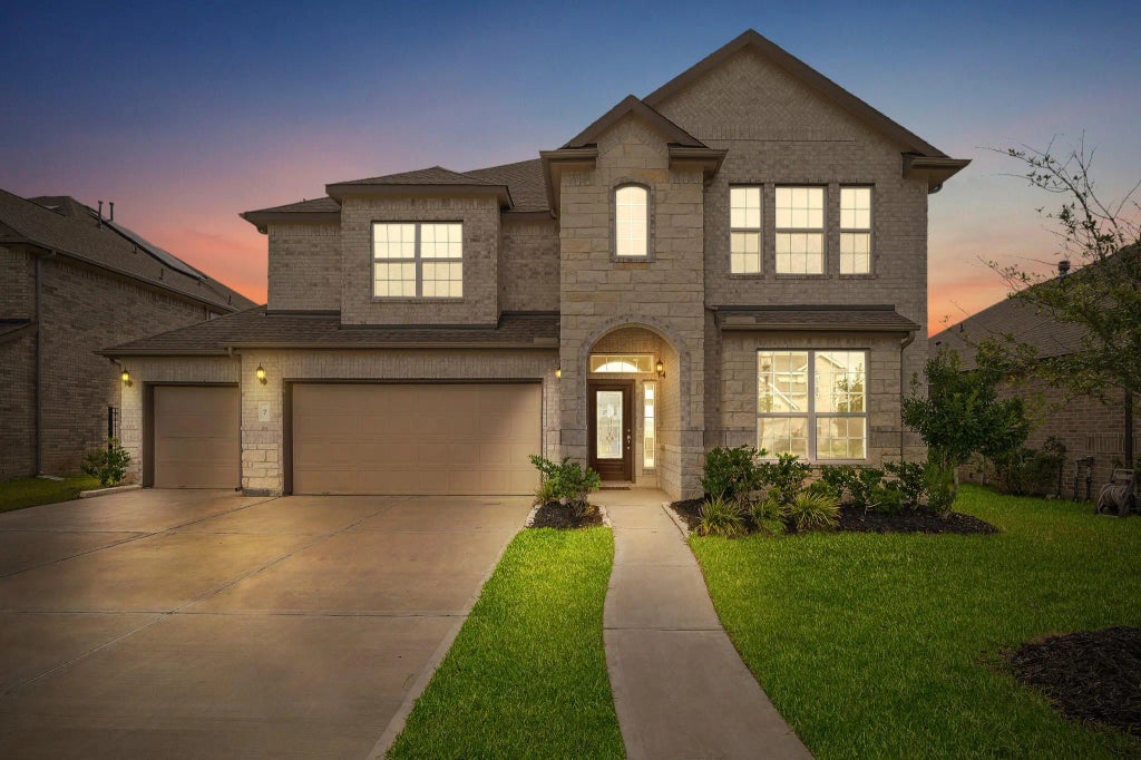 Welcome to this stunning lakefront home on an oversized lot in the desirable gated community of Rodeo Palms. With 5 bedrooms, 3.5 bathrooms, a office/study, a game room, and a flex room, there’s space for everyone. Enjoy high ceilings in the spacious family room with large windows that frame a beautiful lake view. The kitchen features a large island with a breakfast bar, upgraded range hood, farmhouse sink, and a walk-in pantry—perfect for hosting or everyday living. A separate dining room and breakfast area add flexibility. The primary suite on the 1st floor boasts a charming bay window overlooking the lake, a luxurious en-suite bath with dual vanities, a jetted-tub, a separate shower with bench, and a huge walk-in closet. Step outside to your covered patio, pre-plumbed for gas and water;ideal for building your dream outdoor kitchen. The home’s exterior uses white brick on all four sides and white stone on the front. Amenities include trails, parks, a clubhouse, pool, and gated access