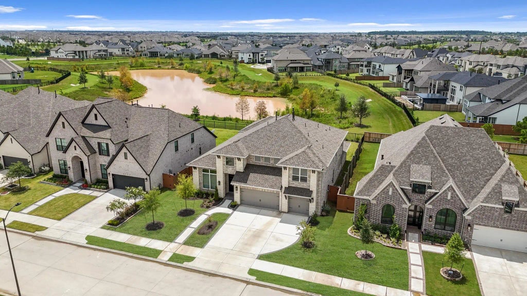 UPGRADES GALORE in this brand new Perry Home located on the lake. Better than new construction! The double front door leads you into a welcoming foyer. Office is located at the front of the home. Gourmet kitchen is decked out: built-in refrigerator (hardware to be added, buyers' choice), Quartz countertops, herringbone backsplash, double ovens, butlers' pantry, spice drawers, pull-out trash, single basin sink, soft close drawers, under-cabinet lights, pots&pans drawers, & more! Dining room is conveniently located next to kitchen. Natural light flows through the 2-story family room overlooking the beautiful lake view. Downstairs primary bedroom features an en-suite bathroom w/dual vanities, walk-in shower, soaking tub, & 2 walk-in closets. Secondary bed & bath downstairs. Upstairs: game room, media room, loft, secondary bedrooms w/Hollywood bath, & bedroom w/ensuite bath. Outside, large covered patio overlooks the backyard & lake. Plenty of room for a pool & tons of Elyson amenities!