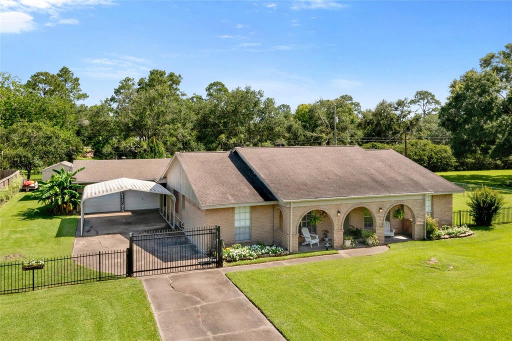Welcome to this inviting home situated on just over half an acre! Offering 4 spacious bedrooms plus an additional flex room and 2 full baths, this property is ideal for both comfortable living and entertaining. The open floor plan seamlessly connects the Family Room, Dining Room, Kitchen, and Breakfast Room. Step outside to a private, fenced backyard with no back neighbors—complete with a shaded patio, chicken coop, and storage building. Recent updates include fresh paint, newly painted cabinets, and beautiful granite countertops. A wrought iron fence with an automatic gate provides both security and convenience, keeping pets safe while adding extra curb appeal. Located within walking distance to Alvin Elementary, Alvin Junior High, and Pearson Park, this home combines comfort, function, and a fantastic location. Don’t miss your chance to make it yours!