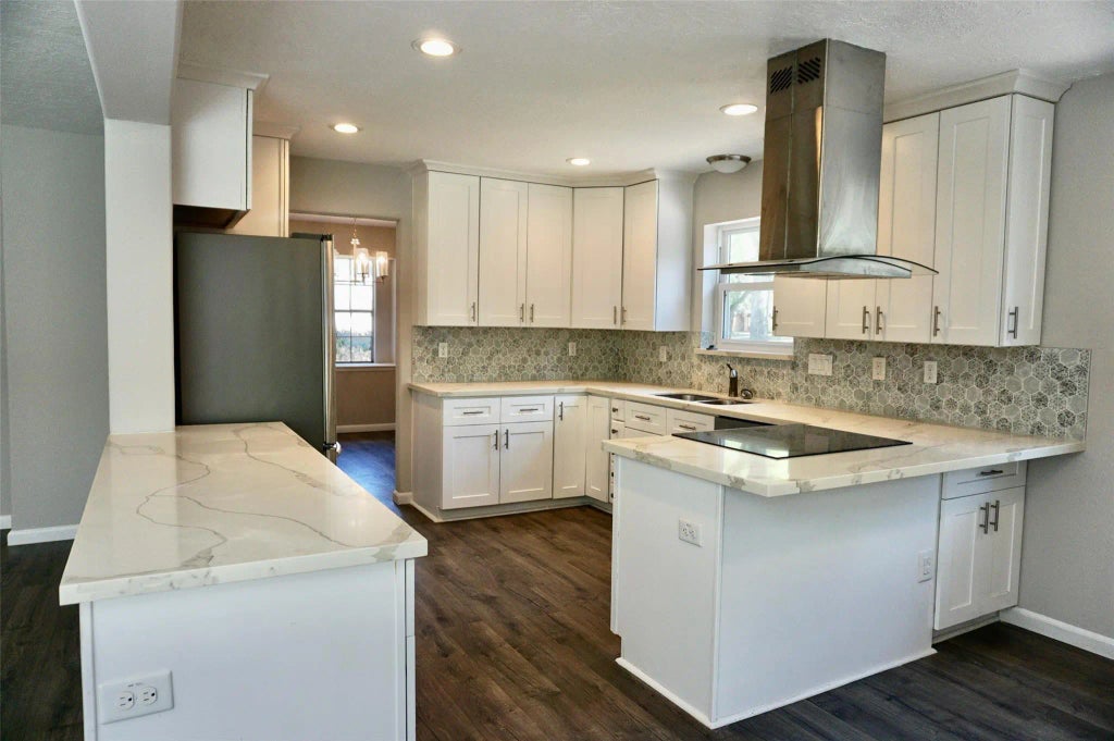 This home has been beautifully remodeled and features an updated kitchen with recent cabinets, Calacatta quartz countertops, modern appliances, wood flooring, and recessed lighting. The master bathroom has been upgraded with a new shower. The entire first floor boasts wood flooring, paint, and recessed lighting throughout. Upstairs, the bedrooms include carpet, ceiling fans, and more. This home is a must-see!
