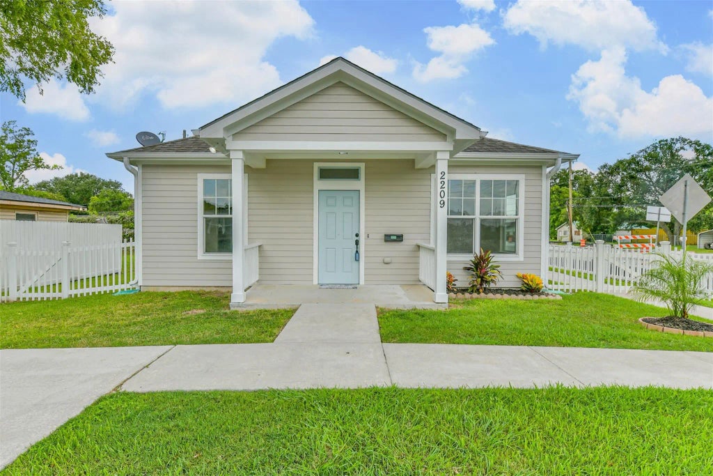 Beautifully remodeled corner-lot home with modern upgrades and easy access to the Gulf Freeway. The property features a new cement driveway and a covered porch. Inside, enjoy 10-foot ceilings and waterproof vinyl plank flooring, with wood-look ceramic tile in the bathrooms for easy maintenance. The kitchen includes brand-new stainless steel appliances—oven, stove, dishwasher, and vented microwave—plus stylish cabinets and countertops. Bedrooms and the living room come with ceiling fans and light fixtures for added comfort. The primary bedroom features an en-suite bathroom with updated cabinets, an elongated toilet, and a ceramic tile tub/shower. The secondary bathroom offers similar updated features for added convenience. Additional highlights include an indoor utility room with washer/dryer hookups and a new backyard storage shed, perfect for organizing tools and equipment. This home blends style, practicality, and comfort in one package.
