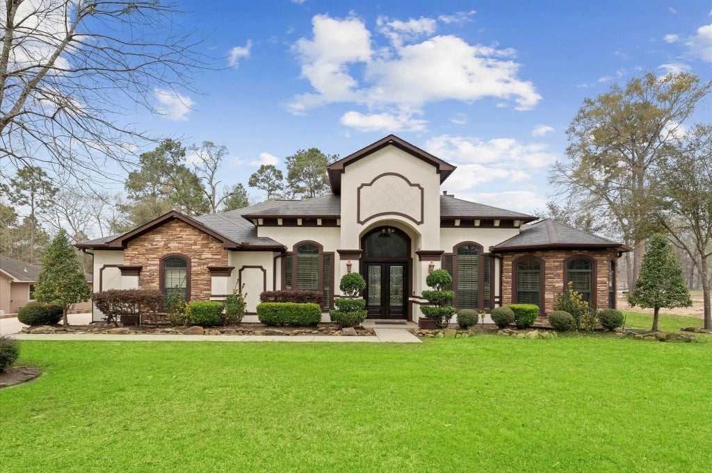 Nestled on an expansive 1+ acre lot, this residence boasts a refined blend of stone and stucco architecture, exuding timeless elegance and curb appeal. Mature trees and lush, professionally designed landscaping create a serene, park-like setting. Step inside to discover soaring domed ceilings, elegant interior columns that add architectural distinction, and a palette of freshly updated neutral tones that highlight the home’s striking finishes. Every detail speaks of craftsmanship and care. The gorgeous primary bedroom features rich hardwood flooring, a charming bay window that floods the space with natural light, dual walk-in closets with custom built-ins, and a spa-inspired ensuite bath designed for ultimate relaxation. Host unforgettable gatherings on the expansive covered patio, complete with a built-in pit barbecue and a private guest suite with separate entry ideal for visitors or multi-generational living. Additional highlights include a detached garage for extra storage space.