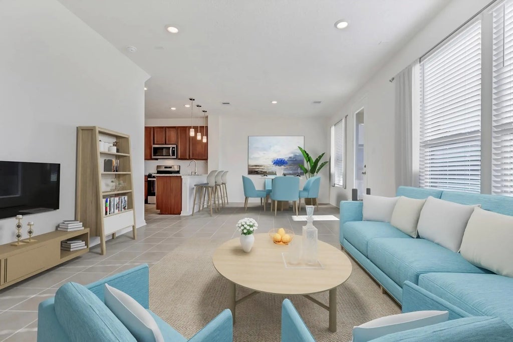 Your next home is here—no need to look any further! this NEVER - LIVED - IN Home is ready for move in! The open-concept living room, kitchen, and dining area create a warm and welcoming space, ideal for everyday living and perfect for entertaining family and friends. The modern kitchen features granite countertops, a breakfast bar, stainless steel appliances, and a walk-in pantry and a fridge is included. Upstairs offers all three bedrooms plus a versatile loft space, great for a game room, second living area, or home office. Enjoy outdoor living in your fully fenced backyard with a covered patio—perfect for relaxing or gathering with friends. It is ideally located near Hwy 249 for quick access to shopping, dining, and entertainment. This home blends comfort, style, and convenience—schedule your showing today!
