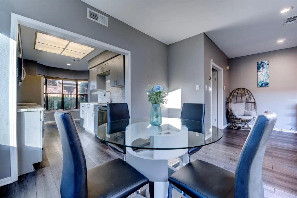 Welcome to 7447 Cambridge St. #79! ALL APPLIANCES, TV's, FURNITURE, WASHER AND DRYER INCLUDED. Move-in ready! beautifully updated 2-bed, 1.5-bath townhome is located in a gated community near the Texas Medical Center. Features include luxury vinyl plank flooring, neutral paint, a cozy fireplace, and large windows offering plenty of natural light. The kitchen boasts granite countertops, subway tile backsplash, stainless steel appliances, and modern cabinetry. Both bedrooms are upstairs with private en-suite bath and walk-in closets. Enjoy the private patio, 2-car garage, club house, tennis court and community pool. Minutes from Rice University, Hermann Park, NRG, and the Museum District. Easy access to 610, 288 & 59.
