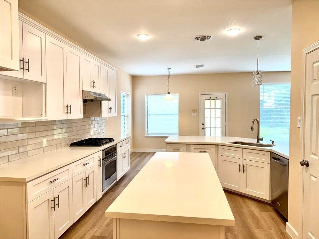 Location! WITH refrigerator, washer and dryer. A newly remodeled and charming home located at the corner lot in the desirable neighborhood of The Lakes in Sugar Land. Solar screens around the house. New water-resistant laminate flooring throughout except two bedrooms upstairs. NEW kitchen Quartz countertop, cabinets, backsplash and recess lights. New water heater, NEW interior paint, NEW master bathroom vanity, mirror and lights. NEW 2" blinds downstairs. Amazing two-story home with lovely brick elevation. Easy access to highway 6 & 59, Costco, HEB and financial center. High rating FBISD schools