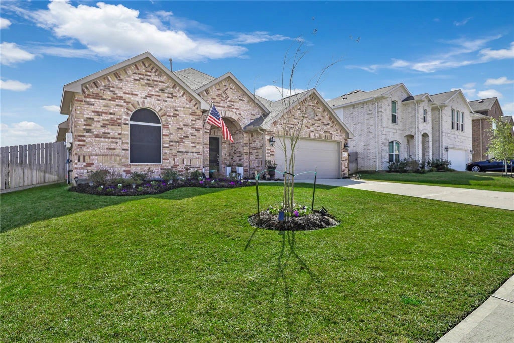 Seller is offering interest rate buy-down! Better than new construction. Welcome to this beautifully designed home in a peaceful community, offering the perfect blend of comfort, convenience, & modern luxury. With easy access to shopping, top-rated schools & IAH, this home is an exceptional find for families of all sizes. Gorgeous curb appeal will welcome friends & family, then step inside to find an open concept floor plan, chefs-delight kitchen open to the spacious family room, eat-in dining area & huge custom pantry. Hard surface flooring throughout living areas, easy maintenance for family and fur-friends. A dedicated home office with stylish glass doors provides a quiet workspace. The private primary suite includes a spa-like bath; the separate children's wing includes 3 spacious bedrooms & a full bath. Upstairs, you'll find an oversized space w/full bath, perfect for a mother-in-law suite, teen retreat, gameroom & media room, or additional bedroom.