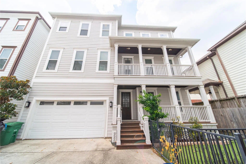 This spacious 3-bedroom, 3.5-bath residence offers a thoughtfully designed layout with modern finishes throughout. The open-concept living area features rich hardwood floors, high ceilings, and abundant natural light, perfect for entertaining. The chef’s kitchen boasts an oversized island with marble countertops, stainless steel appliances, custom cabinetry, and pendant lighting. Upstairs, the primary suite includes a sitting area, walk-in closet, and spa-like bath with dual vanities, soaking tub, and separate glass shower. Secondary bedrooms each offer en-suite baths for privacy and comfort. Additional highlights include a first-floor guest suite, a large laundry room with built-in cabinetry, and a covered balcony overlooking the gated front yard. The private, low-maintenance yard provides a great space for pets, gardening, or relaxing outdoors.