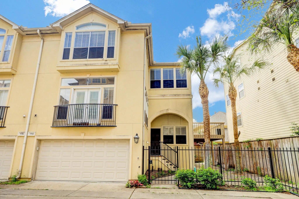 Nestled on the corner with a yard and spacious patio, this home features a welcoming front door and towering palm trees. The open floor plan on the second floor provides a great space for entertaining. The kitchen opens to the living room and dining areas that leads into the patio off the second floor. Secondary bedrooms are all on the first floor, with one opening up onto a covered deck area. The Primary bedroom is located upstairs, next to the laundry room and features a large en-suite bathroom with double sinks, private bathtub and separate shower. The best part of the Primary suite is the huge walk-in closet! You cannot beat this location with quick access to Memorial Park and the trails along the Buffalo Bayou.