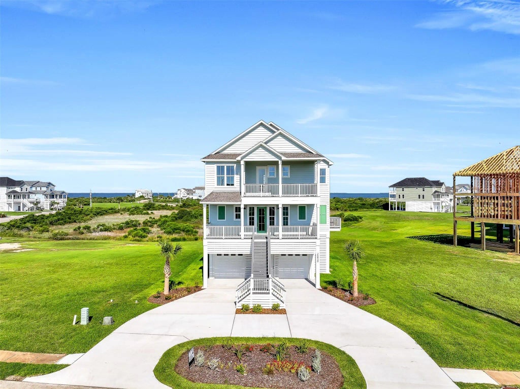 Stunning new construction in sought-after Pointe West! The open-concept main level features a chef’s kitchen with an oversized island, walk-in pantry, and seamless flow into the dining and living areas. Soaring ceilings and walls of windows flood the space with light and frame breathtaking views of the Gulf and Galveston Bay. A powder room and laundry area complete the main floor. Upstairs offers all bedrooms plus a spacious flex space. Multiple decks on the front and back provide the perfect setting for sunrise and sunset views. The home backs up to a wetland and overlooks Galveston Bay—ideal for nature lovers. All resort-style amenities, including the infinity pool, clubhouse, restaurant, fitness center, and lazy river, are accessible by golf cart via the beach tunnel. Whether for full-time living, vacationing, or investment, this home offers luxury coastal living at its best.