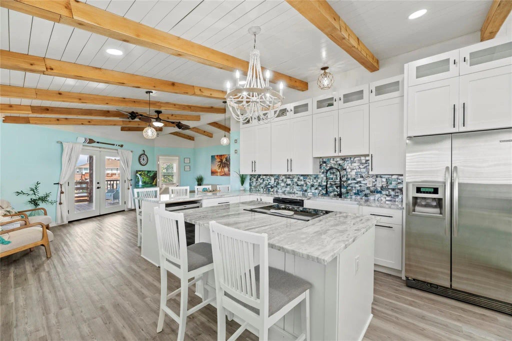 Beautifully updated canal waterfront home with spacious deck in the sought-after community of Bayou Vista! This waterfront gem features 3 bedrooms and 2 bathrooms, along with a modern fully updated island kitchen designed for both style and function. The open layout and large windows bring in natural light and highlight the serene water views, making it perfect for entertaining or relaxing. Enjoy life on the water with easy access to fishing, boating, and sunsets from your own backyard. Just minutes from Galveston’s beaches, dining, and entertainment, this home is ideal as a full-time residence or a vacation retreat. Amenities include a pool and playground. The vacant lot next door is also for sale giving you more privacy and space!!