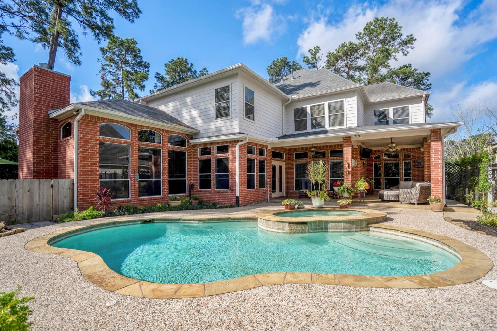 Live the dream in gated Bainbridge Estates! Step inside nearly 5,000 sqft of updated luxury—featuring a sparkling pool and spa, chef’s kitchen, soaring ceilings, and light-filled living spaces. The first floor offers a stately office, primary suite, separate sunroom and a bonus/flex space. The chef's kitchen features granite countertops, double oven, gas cooktop, plentiful storage & a breakfast nook w/ a perfect pool view. Upstairs includes a spacious game room, media room & three add'l bedrooms & 2 full baths. Situated on a 12,598 SF lot, the backyard offers endless possibilities, with your very own POOL & SPA, large, covered patio & fenced yard. Enjoy convenient commutes to The Woodlands & I-45. Equipped w/ a 3-car garage & zoned to the esteemed Klein ISD. Have peace of mind with gated security! 2025 updates include a new HVAC unit & NEWLY PLASTERED POOL IN OCTOBER! 2024 upgrades include paint, water heaters, & partial flooring. Please request the full update list!
